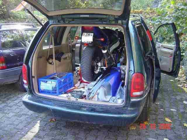 So nimmt man sein Motorrad im Auto überallhin mit, weil das Motorrad ja nie fehlen darf. Dies ist die Variante 1.